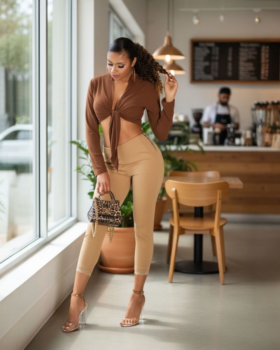 Bokáján csipkés barna csinos női nadrág