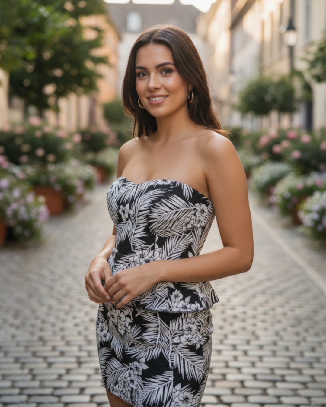 Miniruha peplum S méret fekete mintás Lizy - catwalker